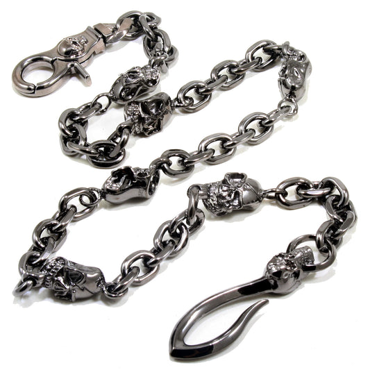 DK EMO Hook Clip Skull Biker Trucker Key Jean Wallet Chain (27.5") SLV/BLK CS28MLT