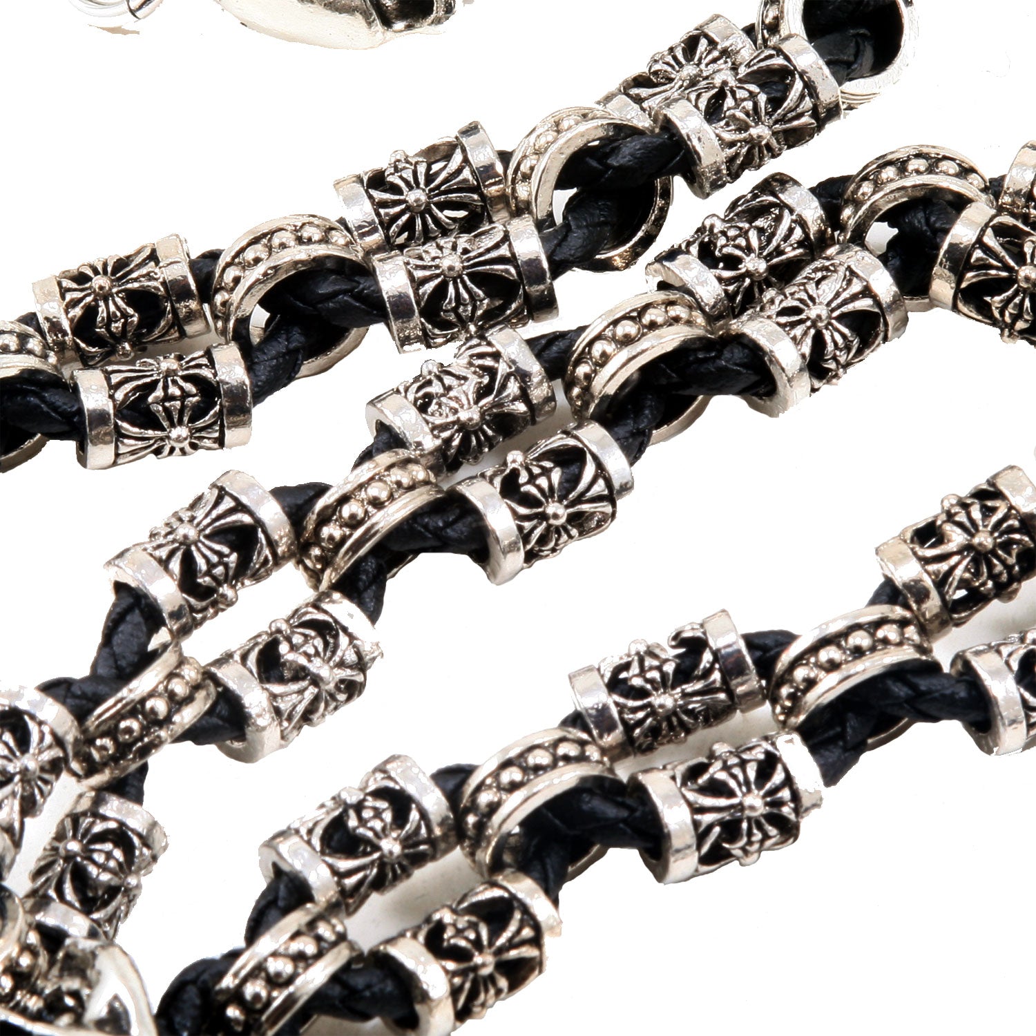 - The chain is made of a Synthetic Leather String and Tin alloy with rotium plating on the surface.